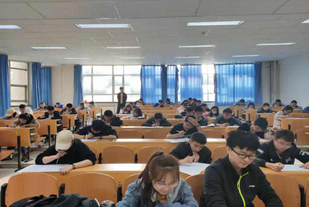在辅导员说明竞赛规则和注意事项后,竞赛以试卷作答的方式进行。经过1小时的奋笔疾书,考试逐渐走向尾声,临近结束大家陆续交卷离场最后,公司工作人员对卷进行批改并登记成绩。