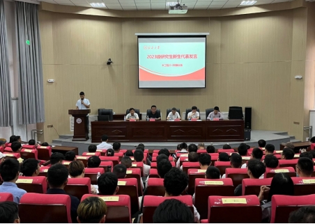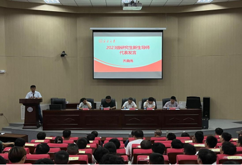 随后,教师代表齐典伟老师鼓励新生同学们在研究生学习期间做到转变、拼搏和坚持。他说研究生新生在学习方法和态度上不同于本科阶段,需要转变尽快适应研究生学习模式;确定研究方向后要拼搏,不要怕坐科研的“冷板凳”,只有坚持才能出得了科研成果。并表态,将认真履行好导师的职责,坚持立德树人根本任务,做好研究生学术和人生成长的导师。