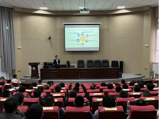 谢经理首先对2023级新生进入zoty中欧表示祝贺和欢迎,他从zoty中欧及公司光荣的办学历史讲起,系统地介绍了zoty中欧官方网站及建筑工程公司的发展历程和雄厚的团队力量,让同学们对公司和公司有了更深入的了解。随后作题为《成就新时代卓越工程师--以岩土工程为例》的报告,从“何谓岩土工程”、“岩土工程涉及领域”、“岩土工程前沿进展”三个方面向全体研究生新生介绍了专业知识,并对提出了新生的希冀和要求:一是转换角色,自踏入校园起,就要躬身扛起使命担当,擦亮“责任奉献”的奋斗底色,涵养家国情怀;二是树立目标,不仅要有远期规划,也要有近期目标;三是人际交往,要不断提高自己的“情商”,培养面向社会的基本能力;四是注重学习,研究生阶段的学习不同于本科,要培养良好的学习习惯、找到合适的学习方法,不断提高学术研究能力,同时大学更是追求真理的一方讲堂,要学会“理论指导实践、实践反哺理论”,做到理论与实践紧密结合,从思想和行动上体现出建工学子的专业素质。