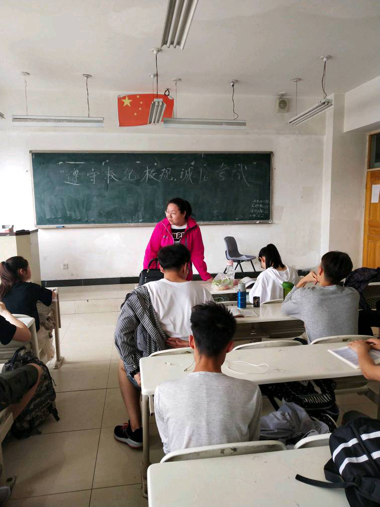 班会过程中,班主任通过身边实例给员工讲解考试作弊的危害,解读校纪校规中考试作弊行为的处分内容和考试有关的注意事项,各班级就怎样调整考前心态,怎样对待考试等一系列问题进行讨论。班会结束时,同学们共现签订了“诚信考试承诺书”。