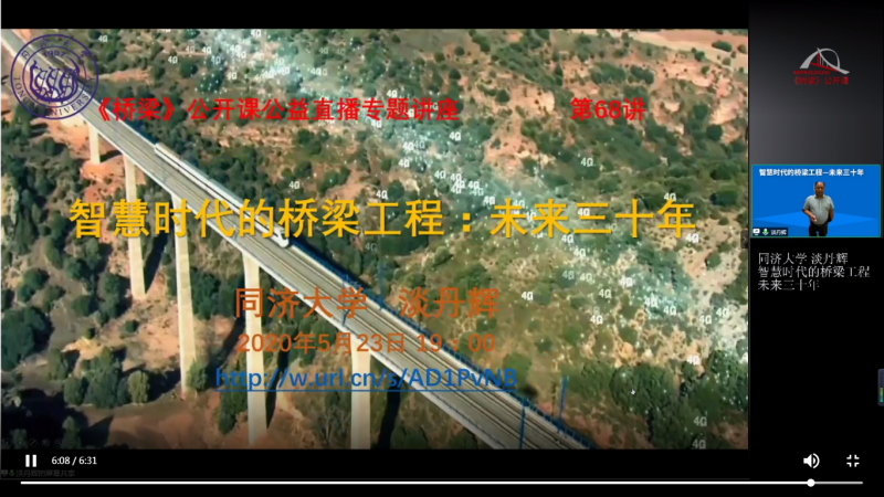 淡丹辉教授“智慧时代的桥梁工程,未来三十年”直播讲座如期进行