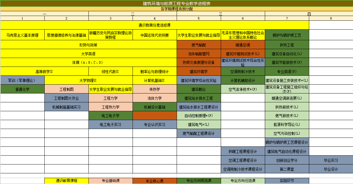 热科学原理和方法、力学原理和方法、机械原理和方法、电学与智能化控制、建筑领域相关基础、建筑环境控制与能源应用技术、工程管理与经济以及计算机语言与软件应用。