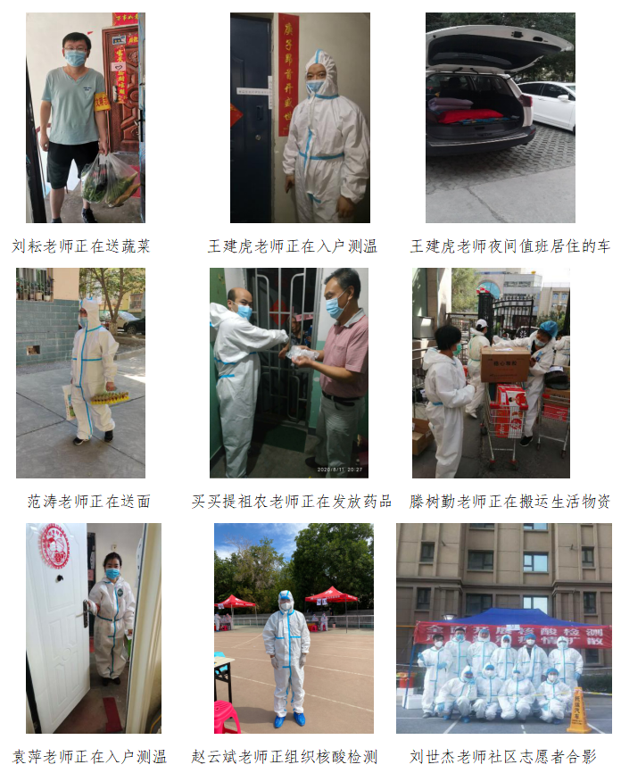 2020年7月,突如其来的新冠疫情,让整个乌鲁木齐按下了暂停键,全面进入了疫情防控响应,重点以社区防控为主,但社区工作人员有限,急需志愿者加入,其间,公司7名党员教师、1名非党员教师参加了其所在社区的志愿者服务活动,为抗击疫情贡献自己的一份力量。