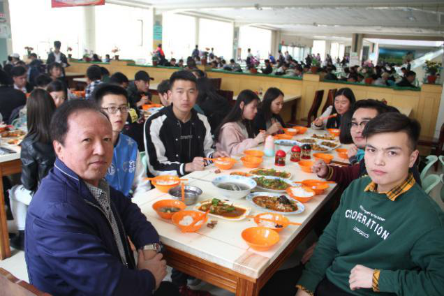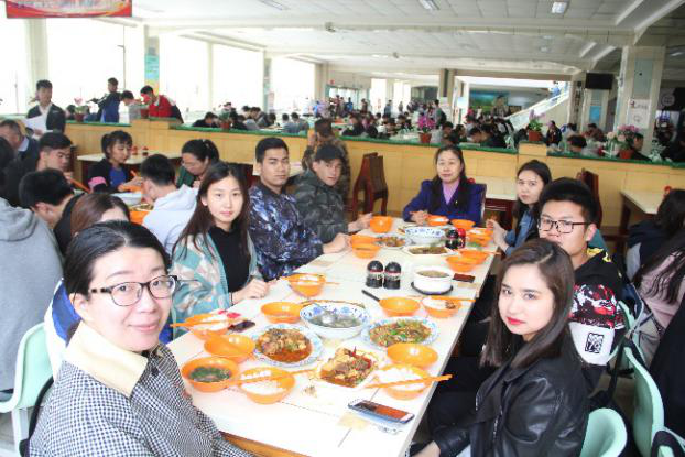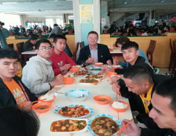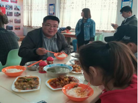 等到员工下课时间,餐饮广场工作人员将精心准备的四菜一汤出锅,老师们端着餐盘来往于窗口和餐桌之间,在短时间内将饭菜摆放妥当。陆续到达的员工在老师们关切的言语和温馨的场所中感受到家的温暖。结对师生一起品尝饭菜后均赞不绝口,师生们就学习、住宿、生活、校园环境和专业等问题亲切的交谈着,师生言笑晏晏,现场气氛异常活跃!美好的时光总是如此短暂,为了不耽误同学们下午上课,三点一过就结束了此次活动。