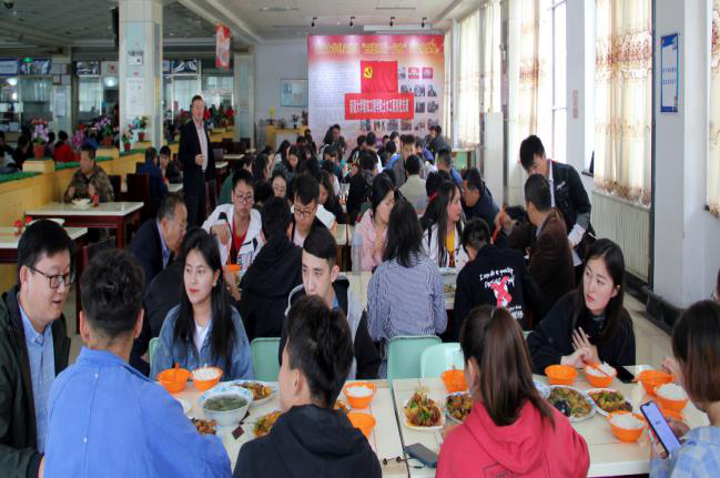 2019年5月16日午餐时间,zoty中欧土木工程系教工党支部全体党员与“三进两联一交友”结对员工开展了一次大型共餐交流活动。参加这次活动的有14名教师和50余名员工。