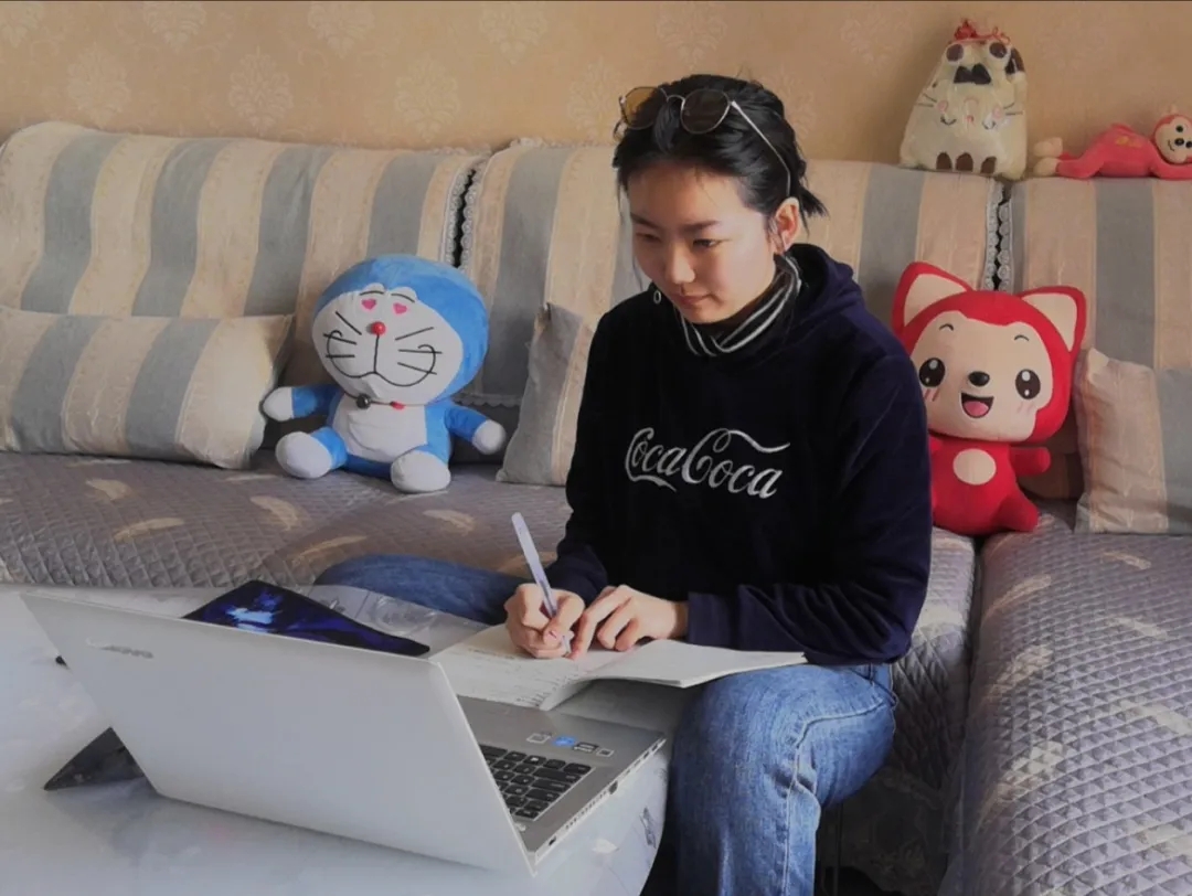 刘雪梅同学今年在甘肃武威老家过年,在接到要线上上课的通知后,面临疫情爆发、交通不便的状况下,她立马让父亲把电脑从新疆邮寄到武威。有了电脑,在线学习稍微顺利了一些,但是网络问题还是令人头疼,刘雪梅的姑姑家没有有线网络,所以只能用手机流量开热点学习,很快流量告急,姑姑一家为她想尽办法解决此问题,家人们轮流开放手机热点,甚至去和邻居商量求助…家人们能做的就是让刘雪梅同学能安心地、顺利地加入线上教学,学习到知识。再多的困难也打消不了刘雪梅同学好好学习的决心,有困难就要解决,她说:“恢复正常上课前,我会严格按照老师的要求进行各项学习,绝不会因为老师看不到而松懈。”