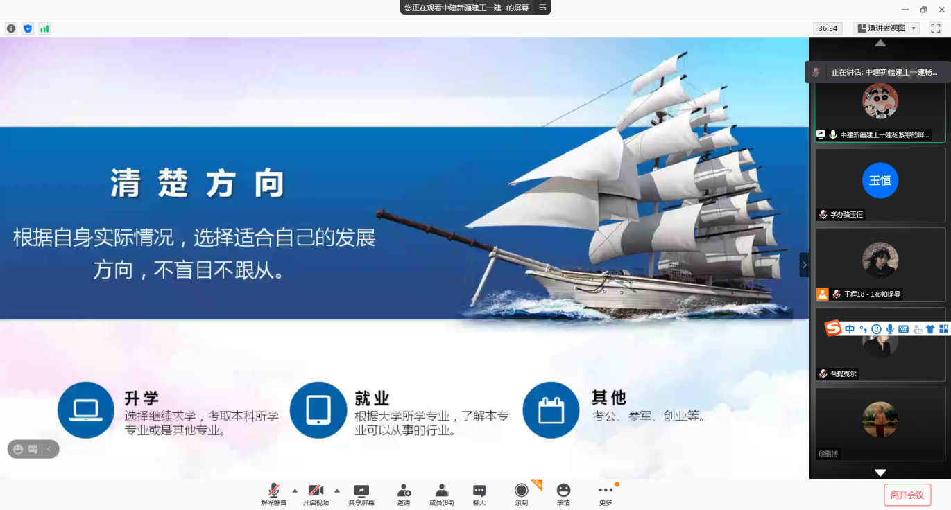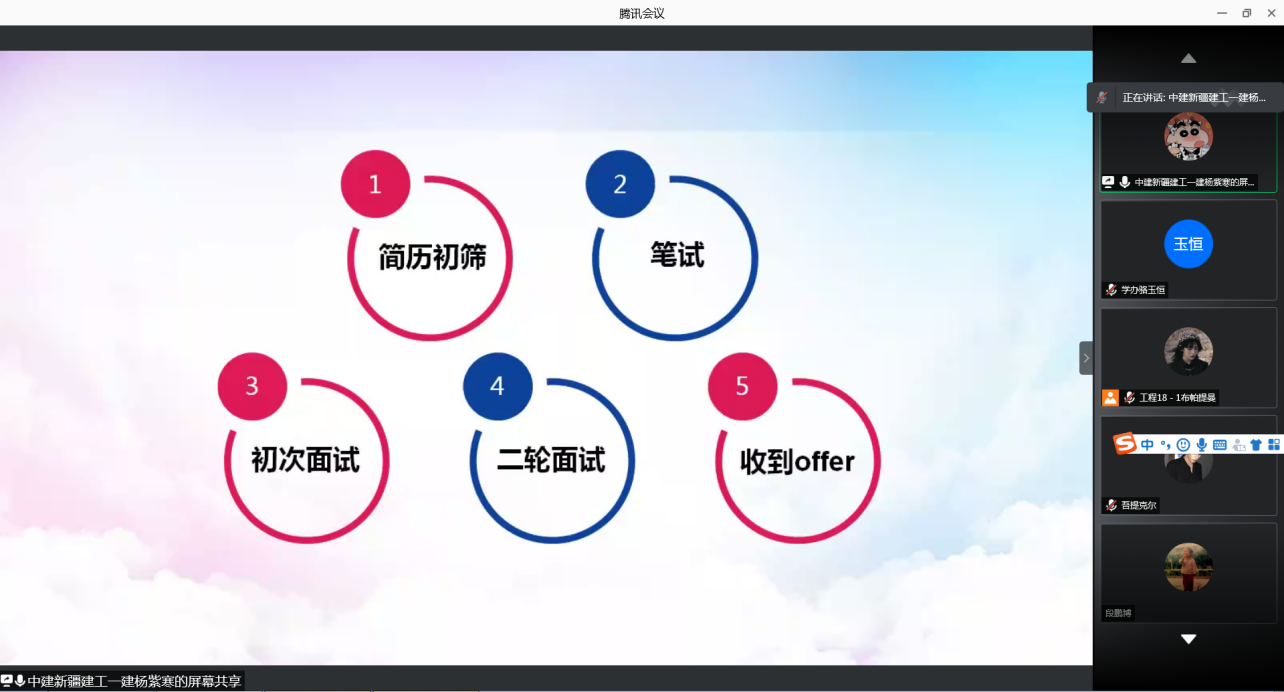 为了落实国务院和教育部关于就业工作的精神,推行精细化的毕业生就业指导和服务工作,引导员工认清就业形势,转变就业观念,挖掘自身潜能,2021年3月9日下午16:30举行2021届毕业生线上就业指导讲座,讲座邀请中建新疆建工一建杨紫寒经理主讲,公司2021届、2022届毕业生参加。