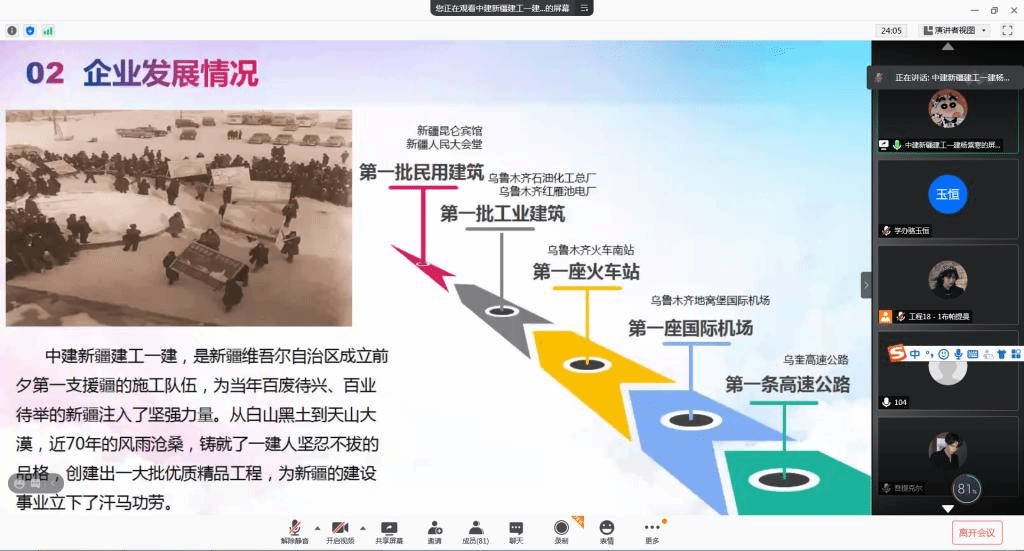 本次宣讲中,杨紫寒经理首先为公司参会毕业生介绍了中建新疆建工集团第一建筑有限公司的发展情况、企业介绍、招聘岗位等方面内容。此外,就员工薪酬待遇、福利以及内部晋升途径等做了详细讲解。