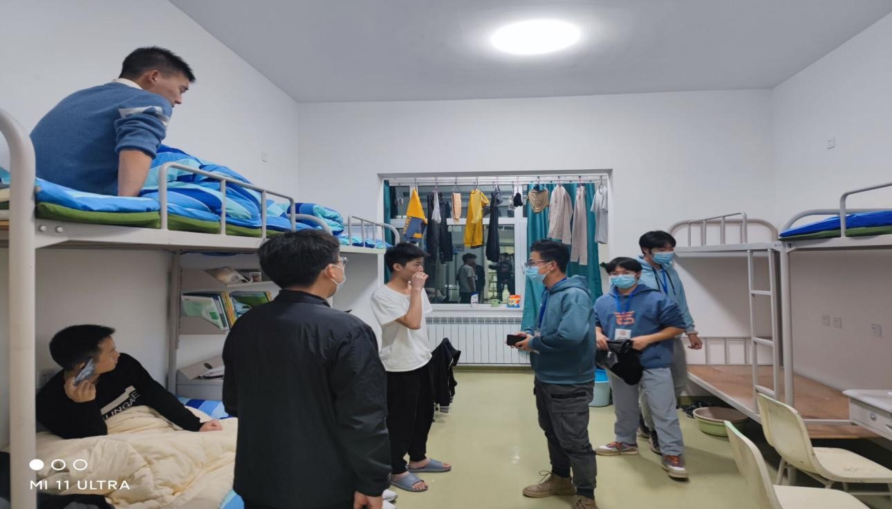 公司辅导员带着生活自律部对铺位整洁、地面卫生、物品、卫生工具的摆放以及大功率电器搜查和安全隐患排查。大部分寝室各方面做得比较到位,宿舍文化健康积极向上,同学们的宿舍干净整洁。同时,辅导员鼓励同学们继续保持整洁的环境,并与同学们亲切交流,了解同学们在生活上存在的问题,希望同学们加强寝室文化建设,增加彼此之间的了解,深化相互的友谊,融洽校园氛围。