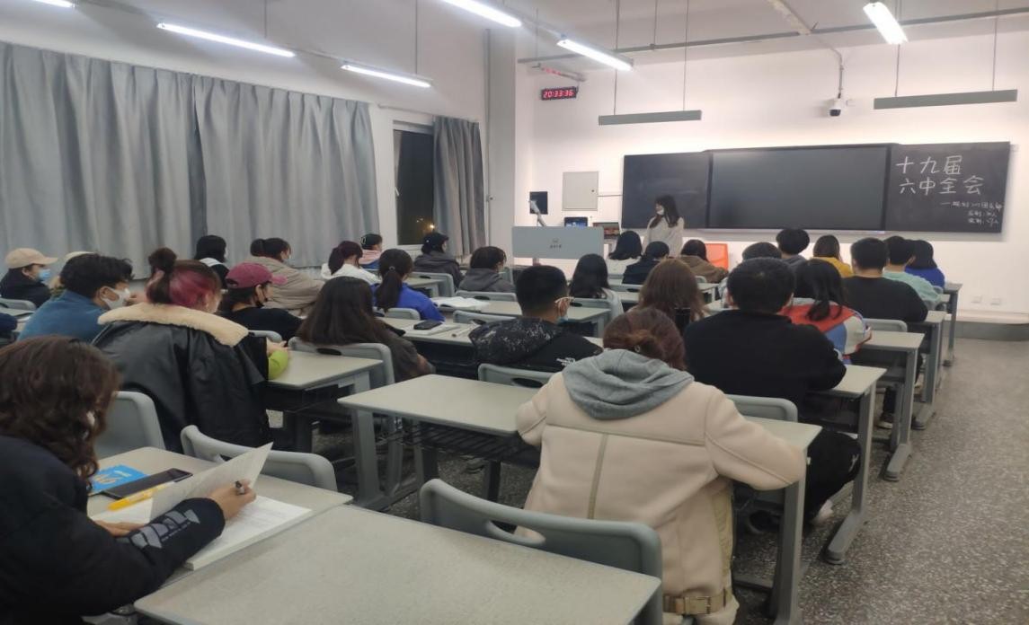 为深刻学习党的十九届六中全会内容和精神,全面认识中国共产党百年奋斗的辉煌成就,深入学习中国共产党百年奋斗的经验启示。zoty中欧分团委于11月16日20:30,开展学习党的十九届六中全会精神的团会观摩会。规划201团支部作为观摩对象,大一至大四和研究生团支部所有团支书参加,规划201团支书同学主持会议。